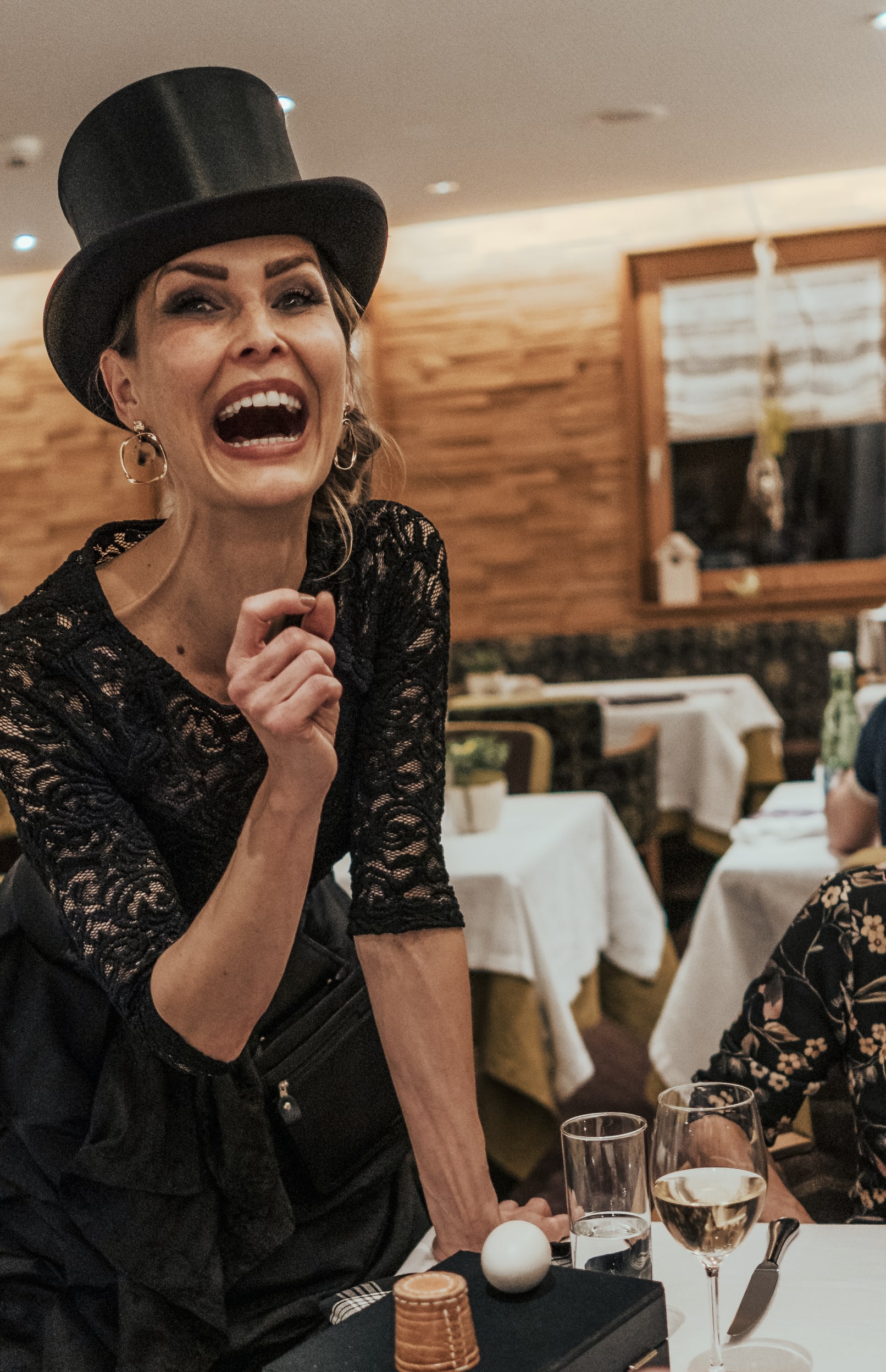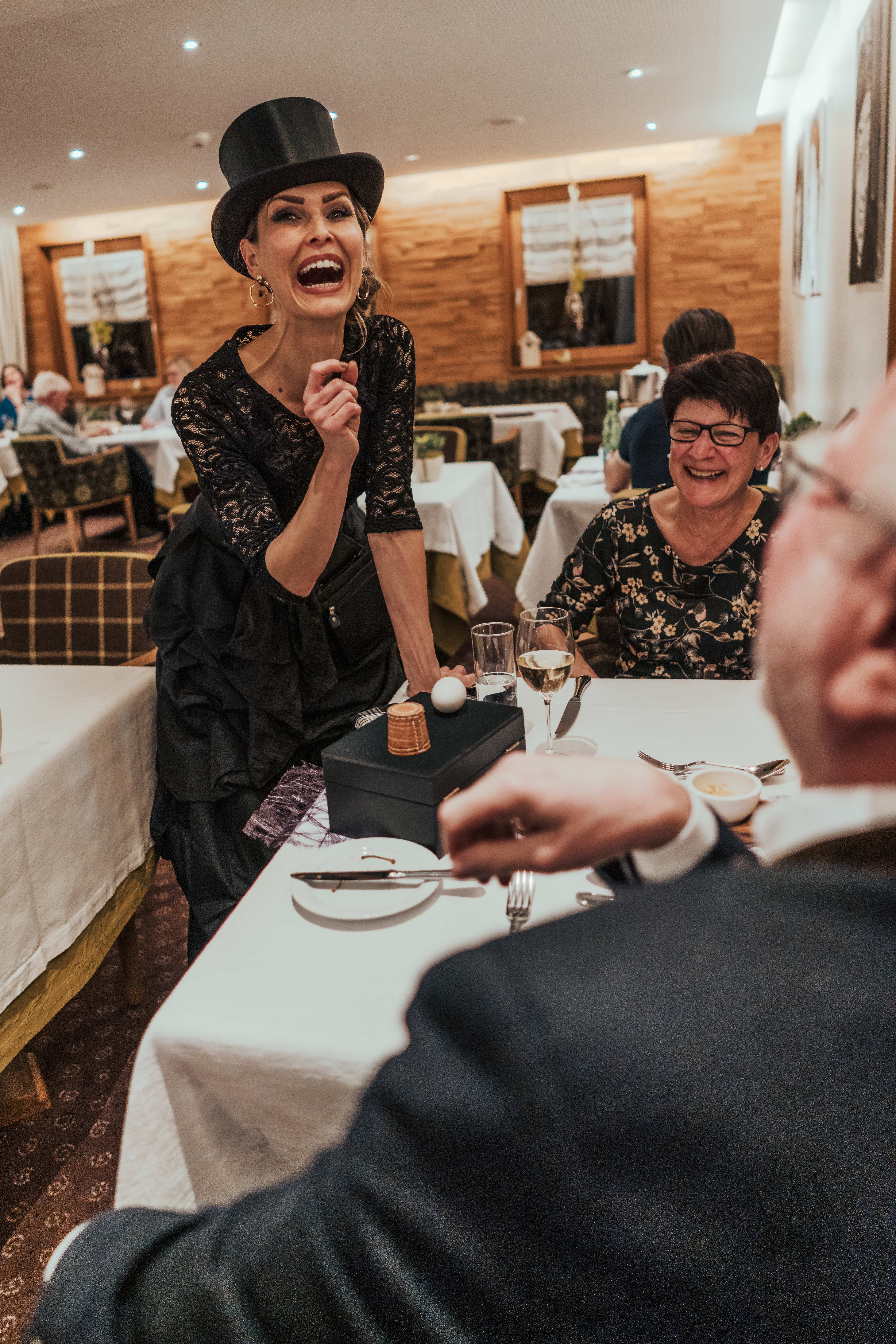 Kerstin Andreatta kann Ihre Zauberkünste und Moderationen perfekt Ihrem Anlass und Ihren Bedürfnissen entsprechend anpassen. Als ausgebildete klinische Psychologin ergibt sich auch eine Synthese mit Elementen der therapeutischen Zauberei und den möglichen heilsamen Wirkungen von Staunen und Lachen. Es entstehen Momente von denen man noch lange Zeit spricht.