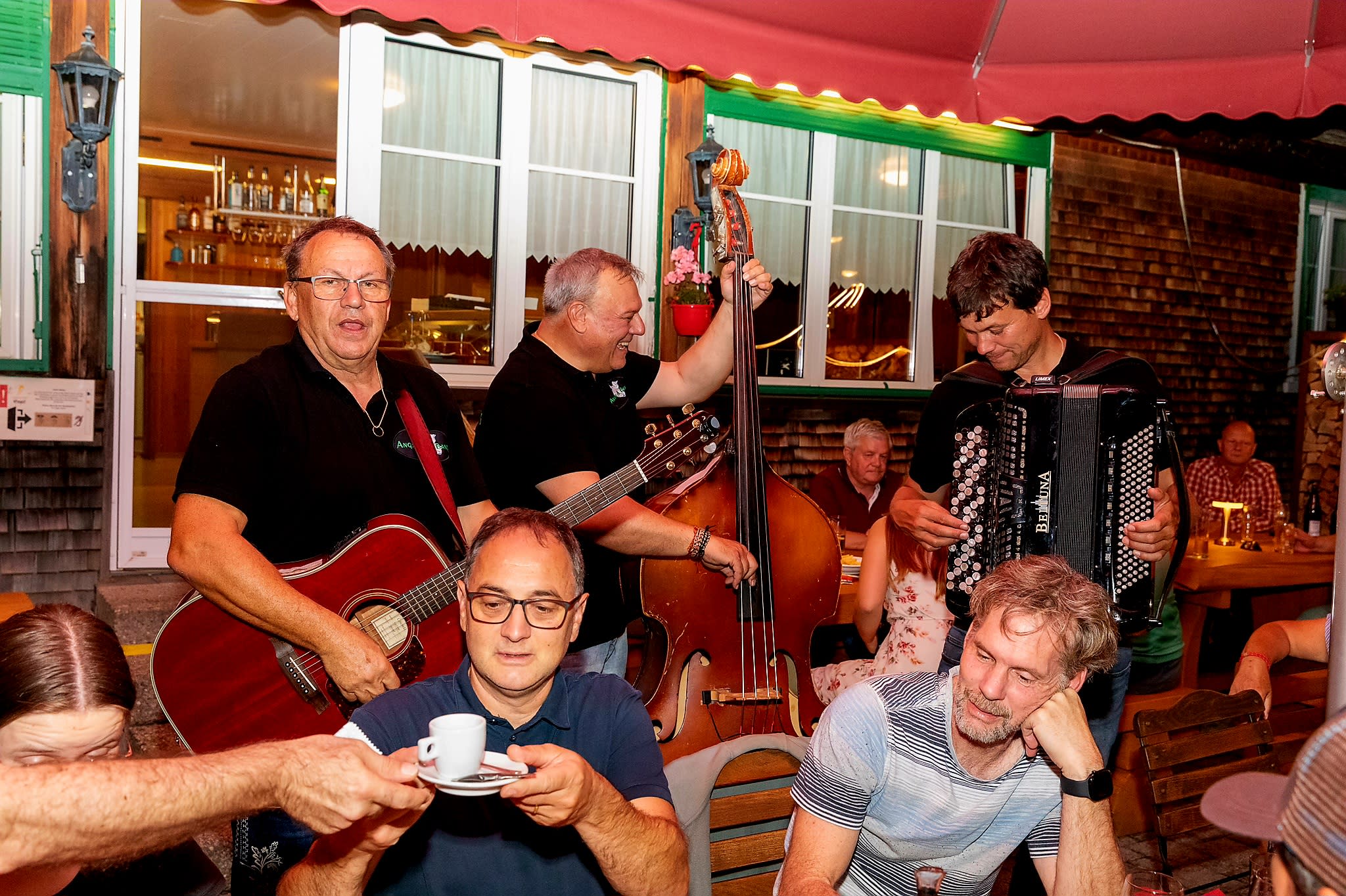 Von Schlager, alpenländischer Volksmusik, Party-Hits, internationaler Musik bis zum Wienerlied haben wir über 200 Songs im Programm. Abgestimmt auf Ihre Veranstaltung. Wir empfehlen uns speziell für alle Anlässe, bei denen Musik mit Qualität gefragt ist. Ob von Tisch zu Tisch, an der Apero-Bar usw. Auf Wunsch gerne auch als Tanz- bzw. Party-Band (ab 80 Personen, verstärkt mit eigener Anlage).