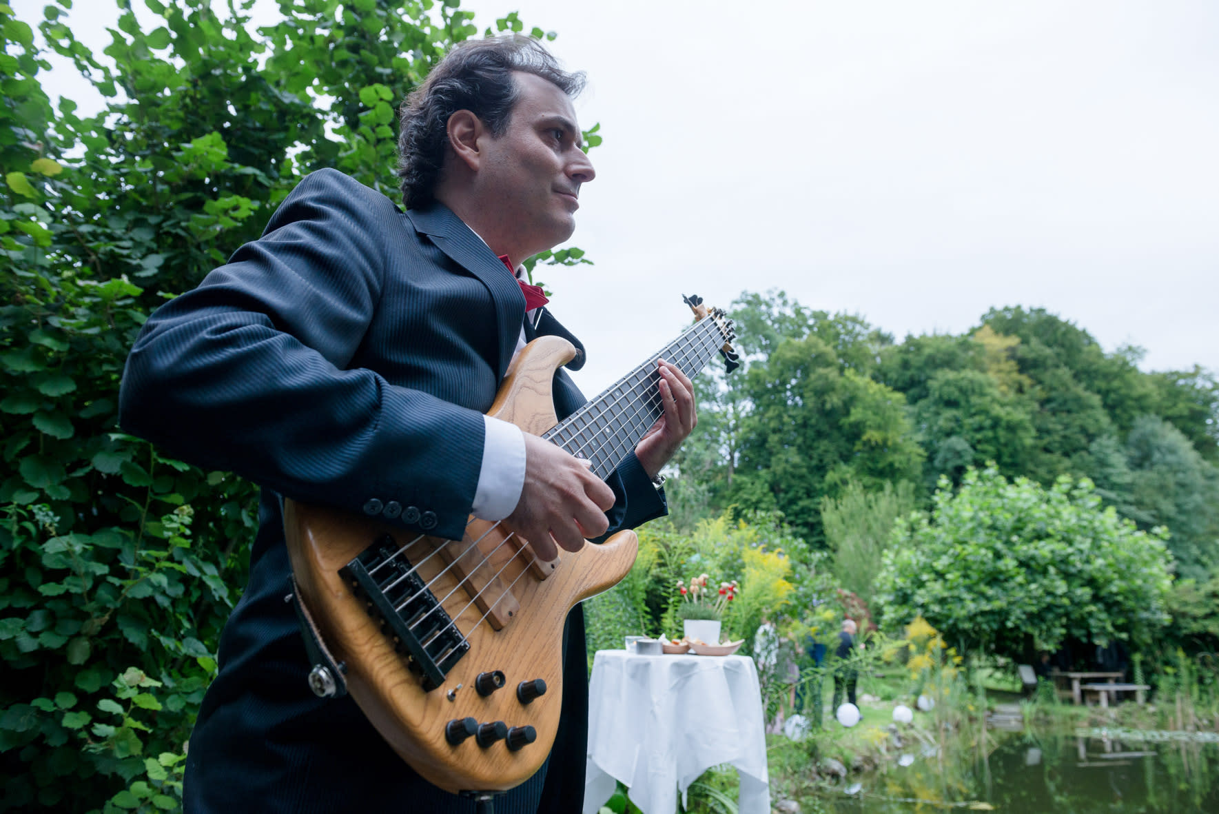Im Hintergrund auflegen, Gitarre und singen oder instrumental mit 6-String-Bass, akustischer oder elektrischer Gitarre dezent spielen, so dass sich die Gäste verständlich unterhalten können.
