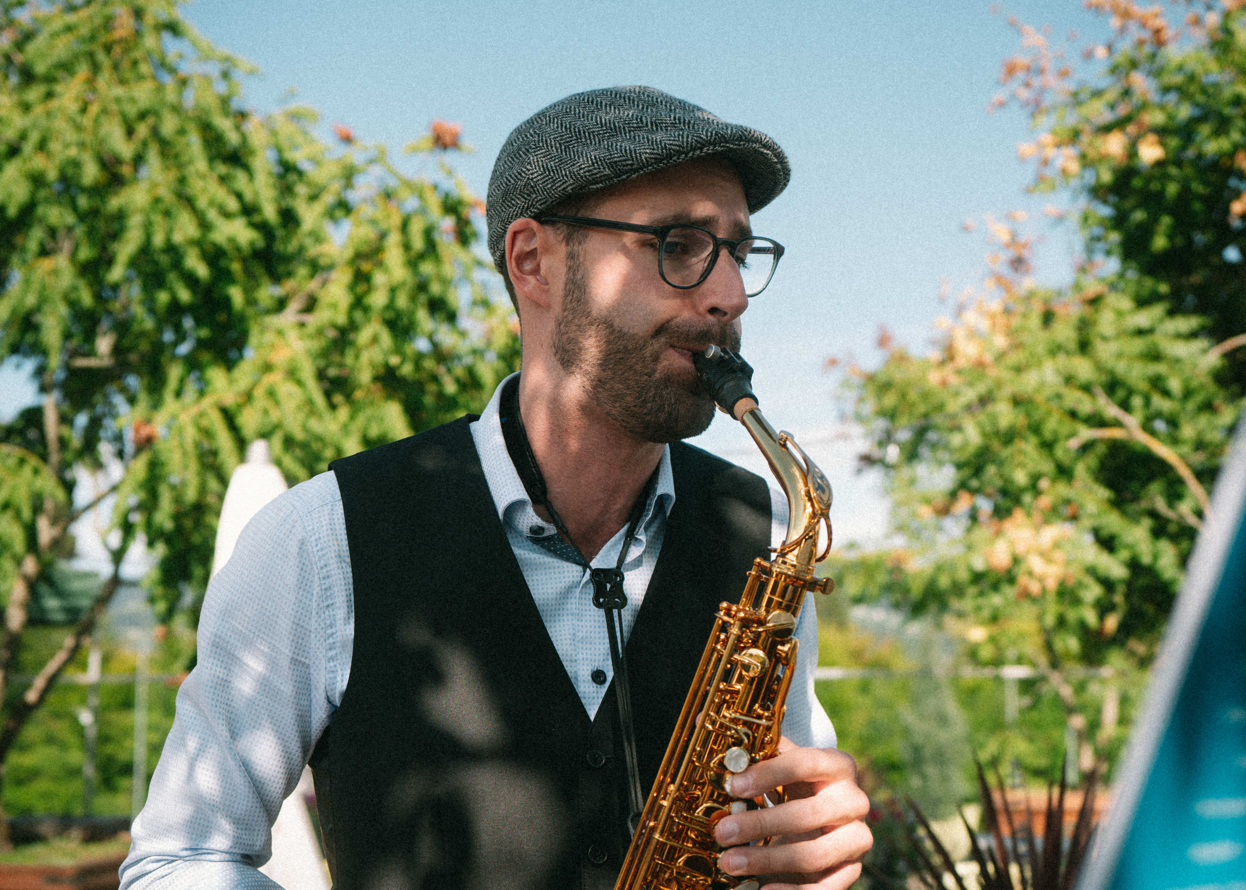 Roger hat den Hochzeitsapéro mit seinen Saxophonklägen zu etwas Besonderem gemacht. Wir waren begeistert von der Professionalität und dem Talent von Roger. Er hat nicht nur musikalisch überzeugt, sondern auch die Organisation mit der Eventlocation übernommen. Von der Tontechnik bis zur Songauswahl - alles war perfekt abgestimmt!