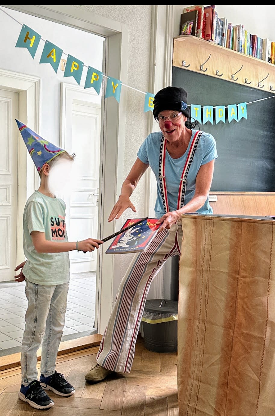 Ich kann nach einer 30-45-minütigen Kinder-Mitmach-Zaubershow mit den jungen Partygästen zusammen