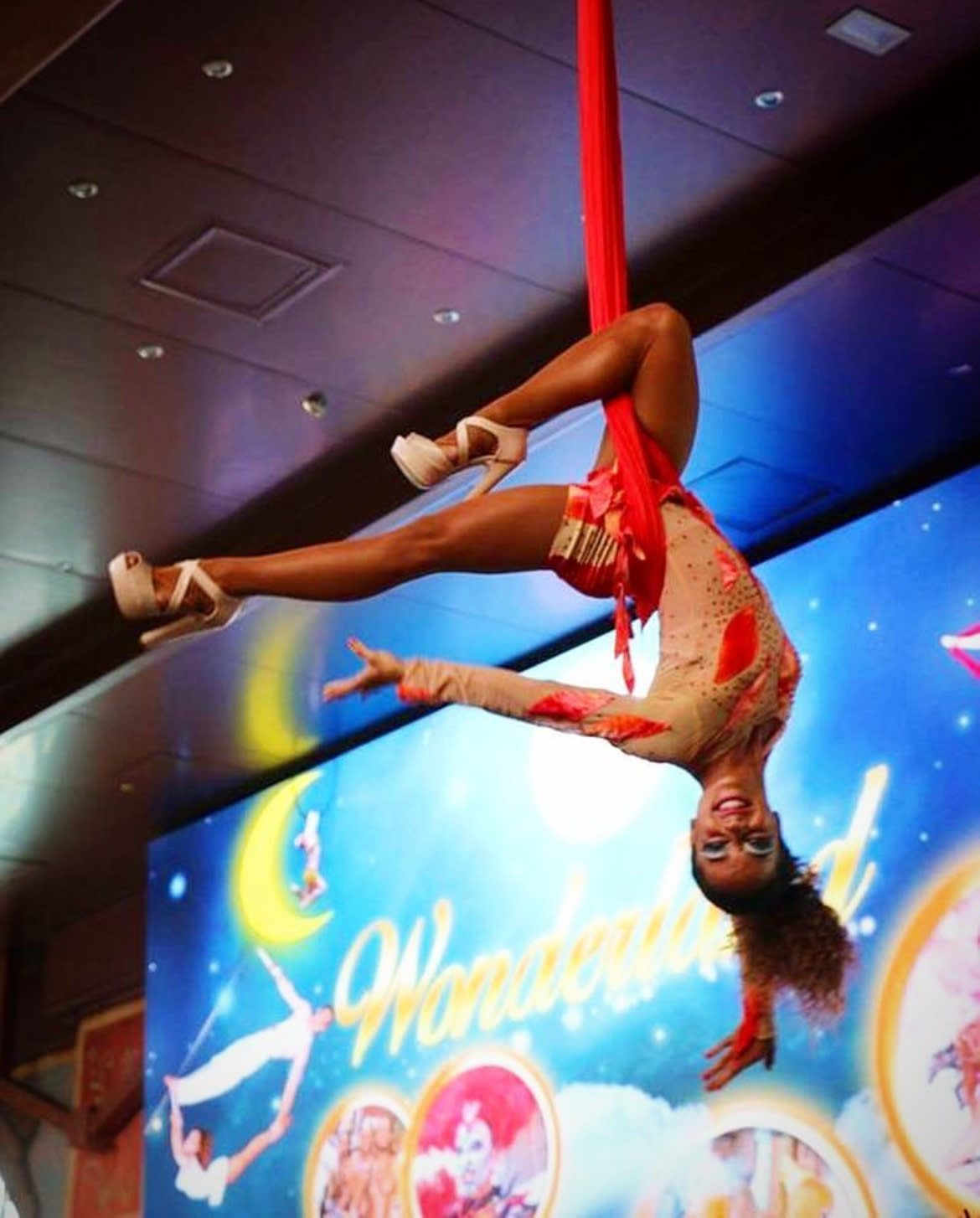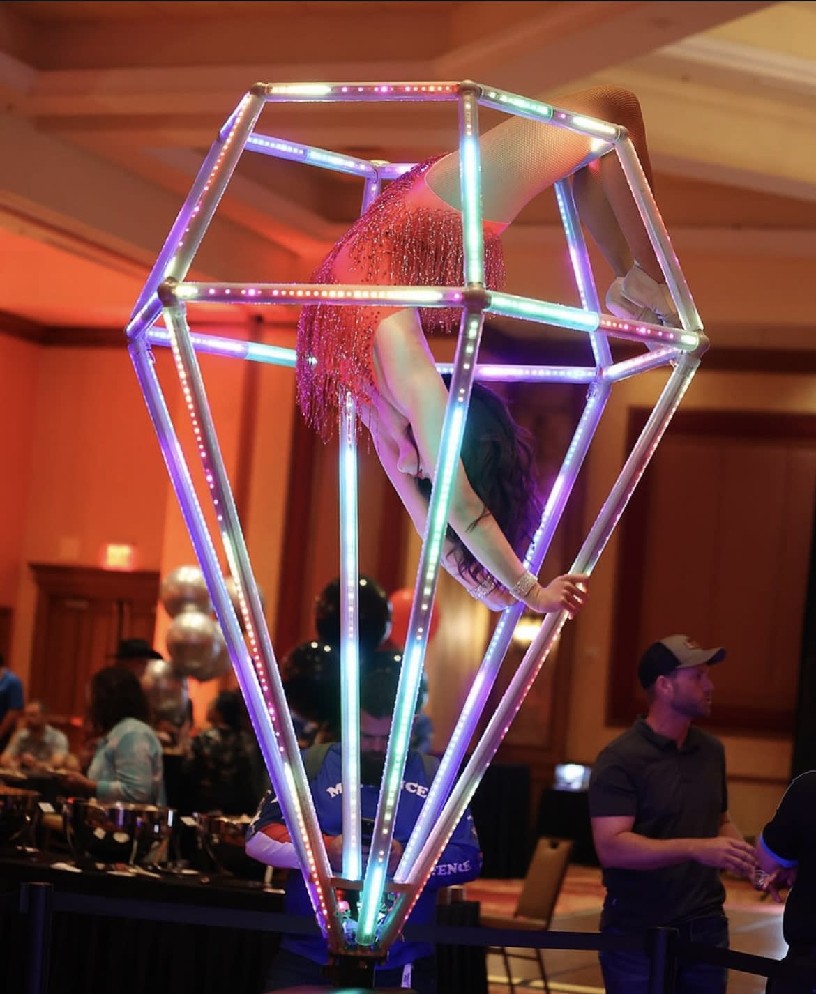 Ich biete Shows mit Pole Dance, Aerial LED Diamond, Tücher, Hoop und Trapez, jeweils individuell auf dein Event zugeschnitten.