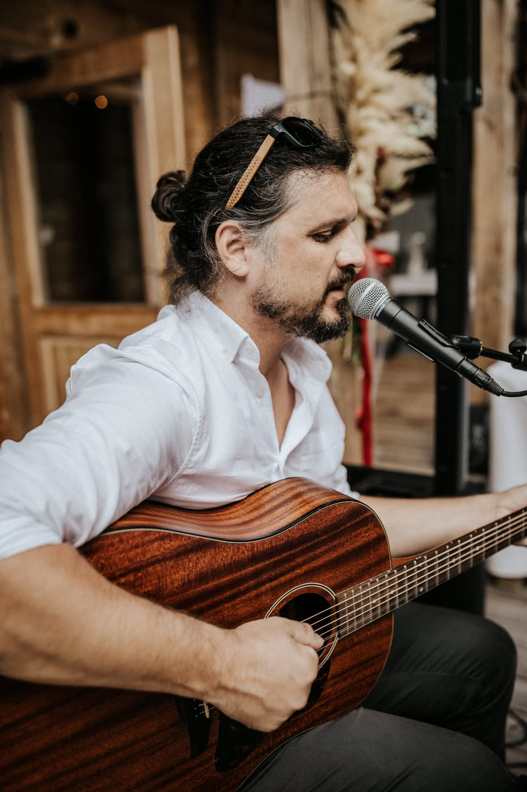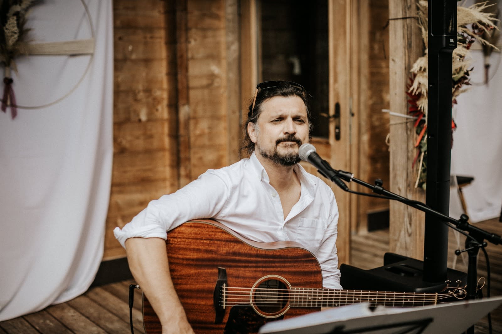 Daniel hat während unserer Zeremonie und danach während dem Apero gesungen und mit der Gitarre gespielt. Er kann sehr toll singen und Gitarre spielen! Wir und auch alle unsere Gäste waren begeistert.