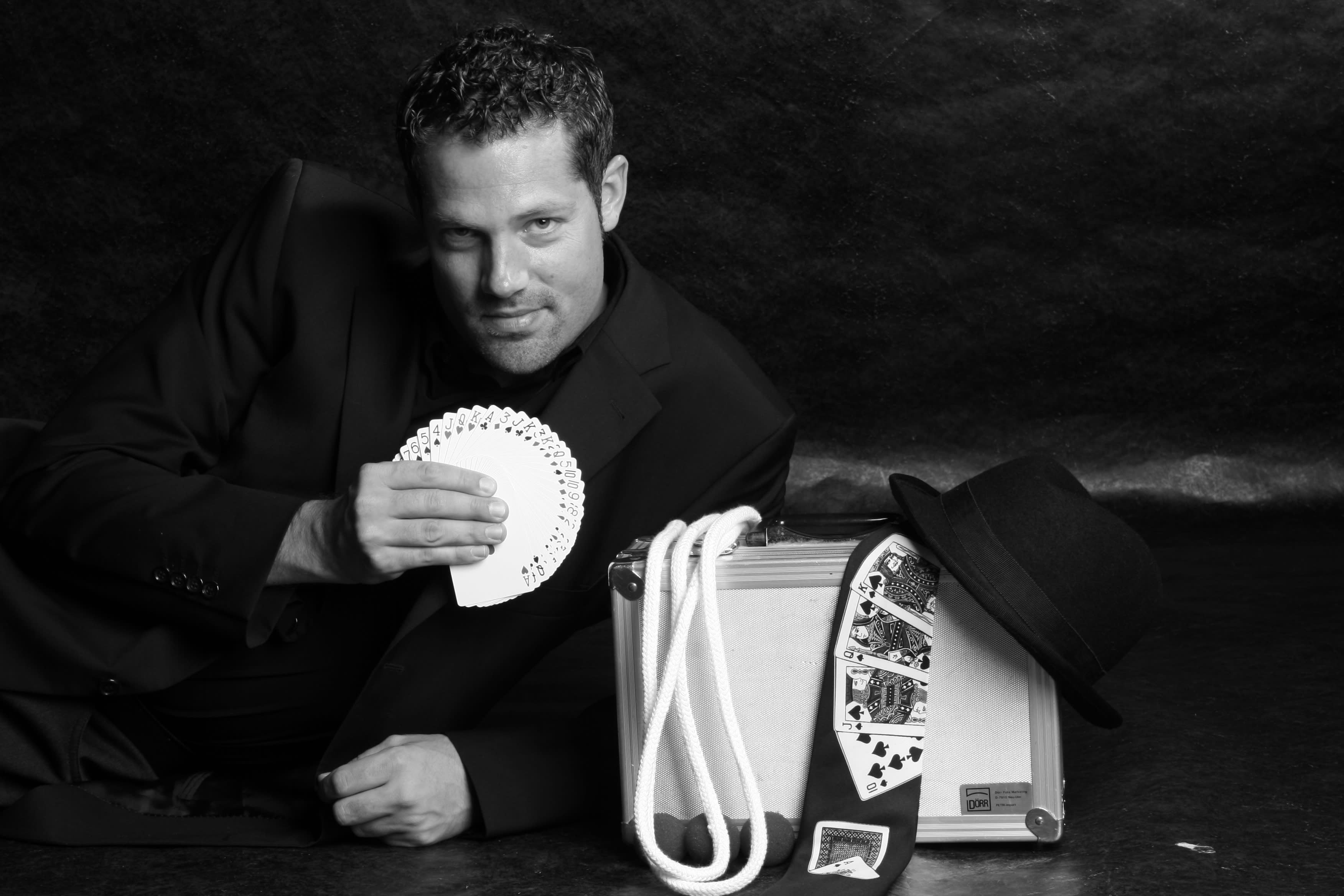 Man nehme einen charmanten Sprechvirtuosen, füge ein paar zauberhafte Sprüche, einen Schuss Schlagfertigkeit, ein paar geriebene Witze, eine Tranche Fingerfertigkeit, einen Hauch Fingerfertigkeit, eine Prise Wahnsinn und eine grosse Portion Humor dazu und schon erscheine ich!
