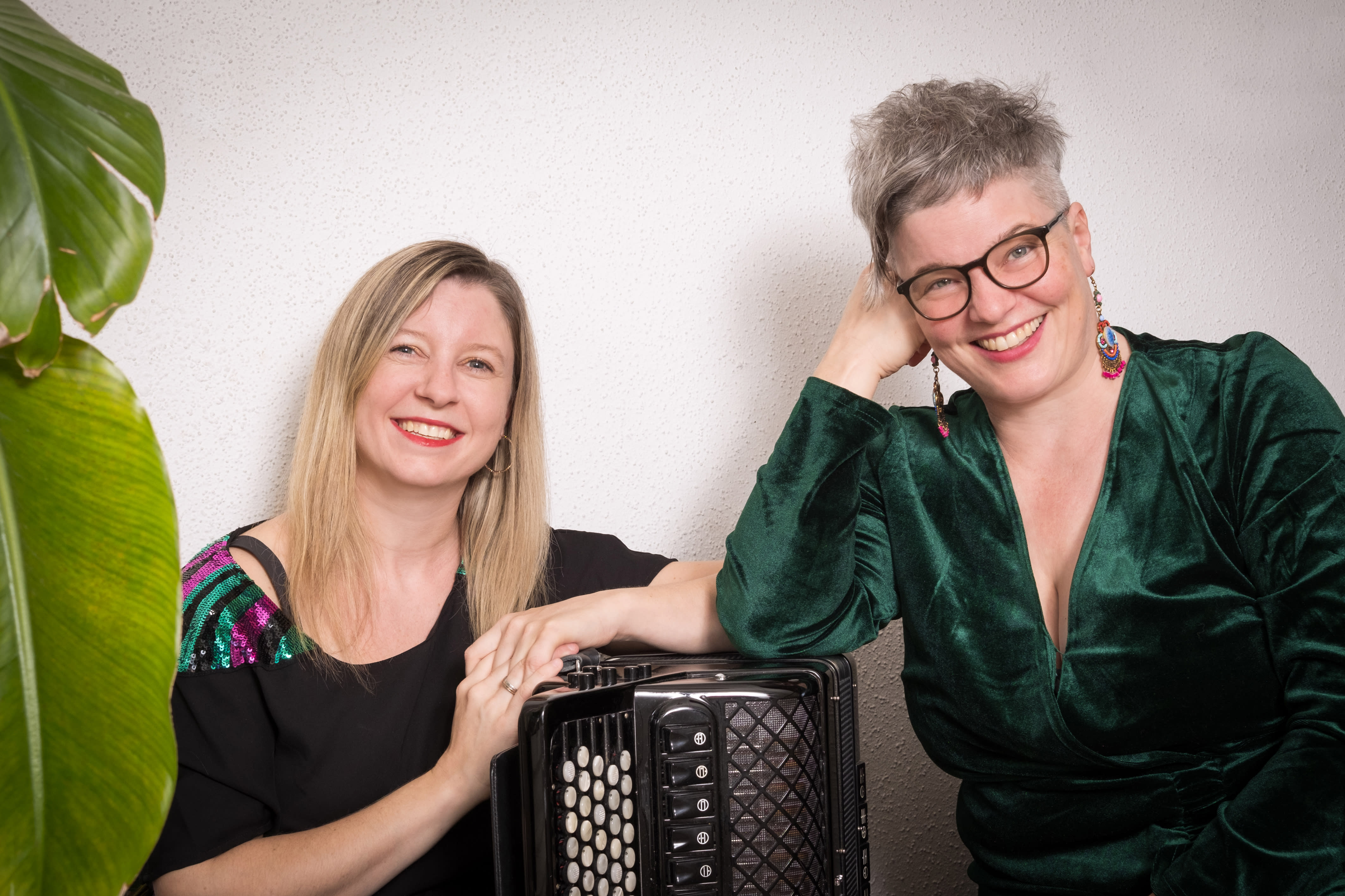 Die beiden erfrischenden Musikerinnen lassen mit Akkordeon und Gesang so manche Musik zu einem Fest werden.