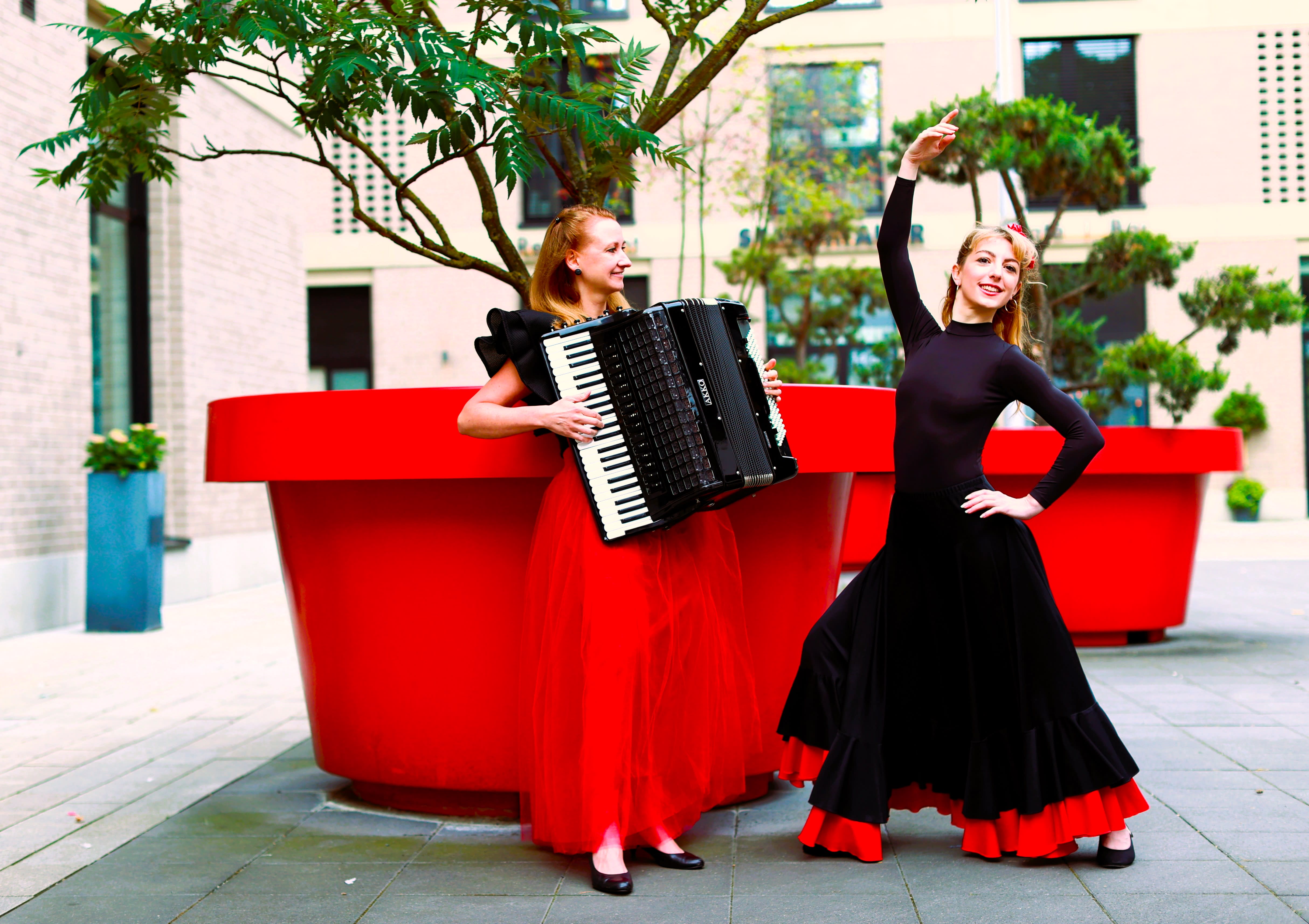 Das Duo AccorDanse besteht aus der klassischen Akkordeonistin Nastja Schkinder und der ausgebildeten Bühnentänzerin Sophie Julie.