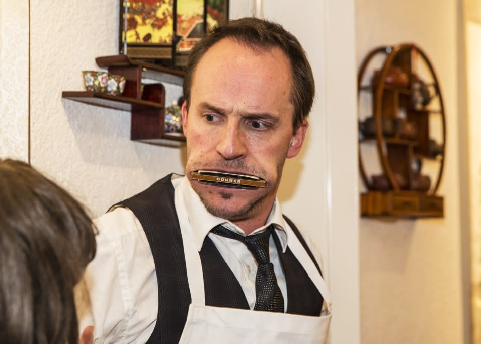 Komische Kellner, Skurriler Gast, falsche Musikerin, Referent, Securiatas und Stand up Comedy