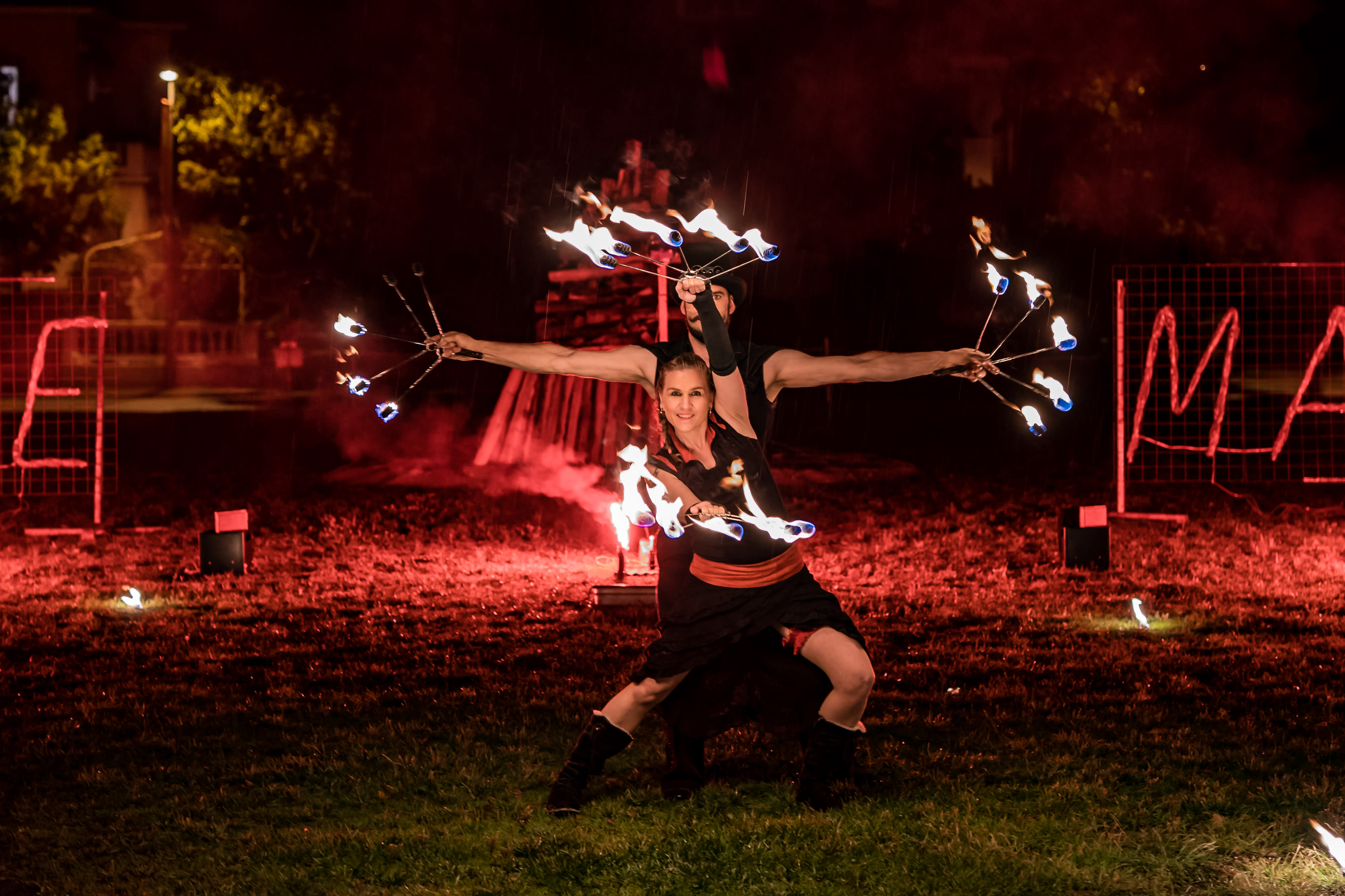 Feuer-hulahoops, fliegendem Stab und Feuerseilen immer sehr beliebt!