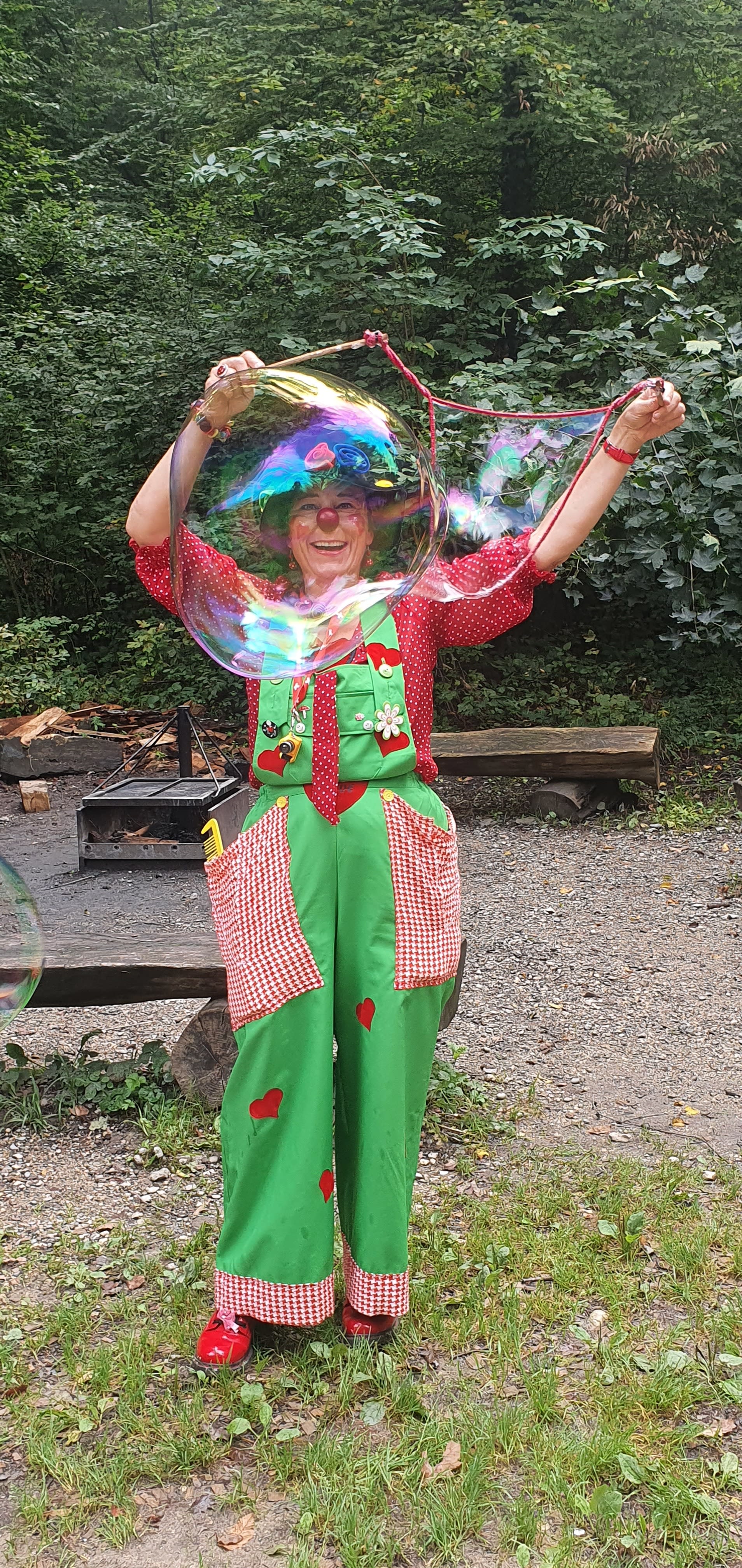 Ich bin eine Clownin mit viel Herz für Kinder! Ich liebe alle Kinder, ob klein, gross, frech oder schüchtern! Ich verzaubere die Kinder mit meinen Mitmach-Zaubershow, bei welcher das Geburtstagskind auch zaubern darf, wenn es möchte. Nach der lustigen und interaktiven Zaubershow, welche rund 30-40 Minuten dauert, kreiere ich tolle Ballon-Figuren, welche die Kinder selbstverständlich nach Hause nehmen dürfen. Je nach Jahreszeit können alle Gäste, die kleinen wie die grossen, draussen selber Riesenseifenblasen machen! Wir werden viel Spass haben miteinander und ich mache Deine Party unvergesslich!!
