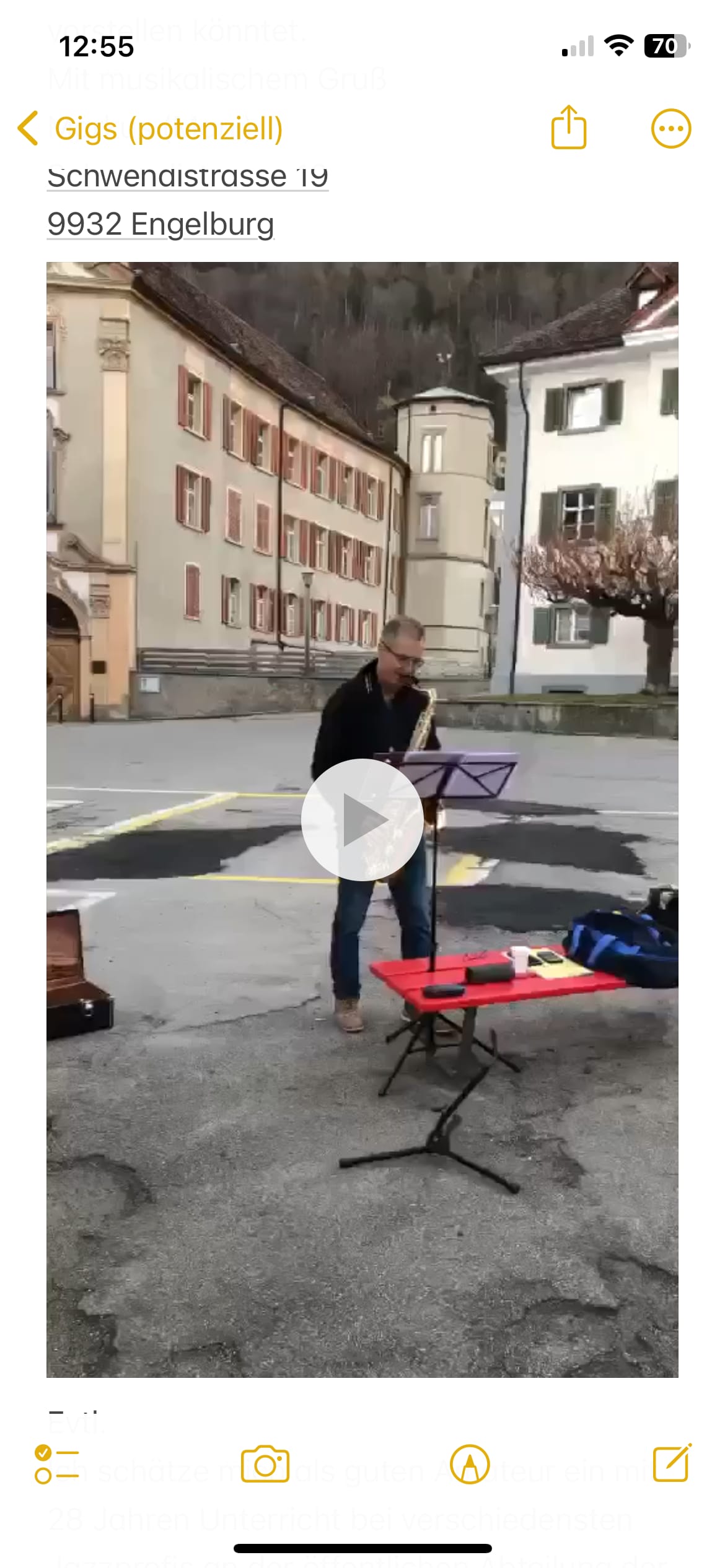Ich bin flexibel einsetzbar für jede Gelegenheit, z.B. für Aperos, Geburtstage, Brunches und Vieles mehr. Ich spiele Jazzstandards, z.B. „So What“ von Miles Davis, „Cantaloupe“ von Herbie Hancock, „Song for my Father“ von Horace Silver, „Take Five“ von Paul Desmond, „Girl from Ipanema“ von Antonio Carlos Jobim etc. mit backing tracks als Begleitung, d.h. der Rest der Band spielt in der Box und ich mache die Leadstimme.