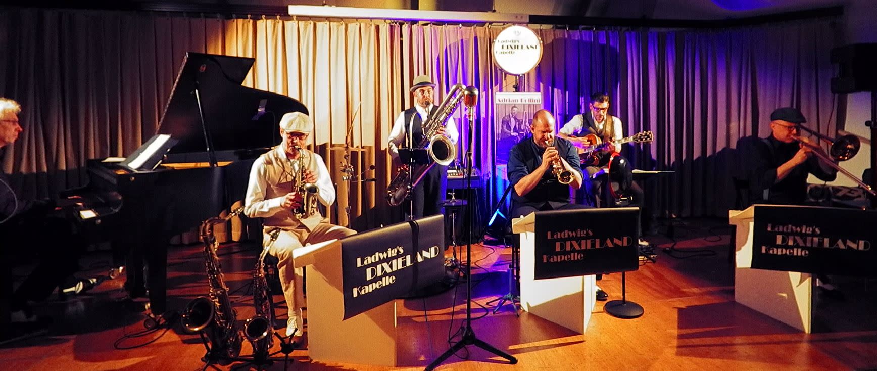 Es ist uns Verpflichtung und Ehre zugleich: Ladwigs DIXIELAND Kapelle hat sich mit Verve der Popmusik der 1920er und 1930er Jahre verschrieben und spielt wunderbar swingenden Hot Jazz in wechselnden Besetzungen vom Duo bis zur Orchestergröße.