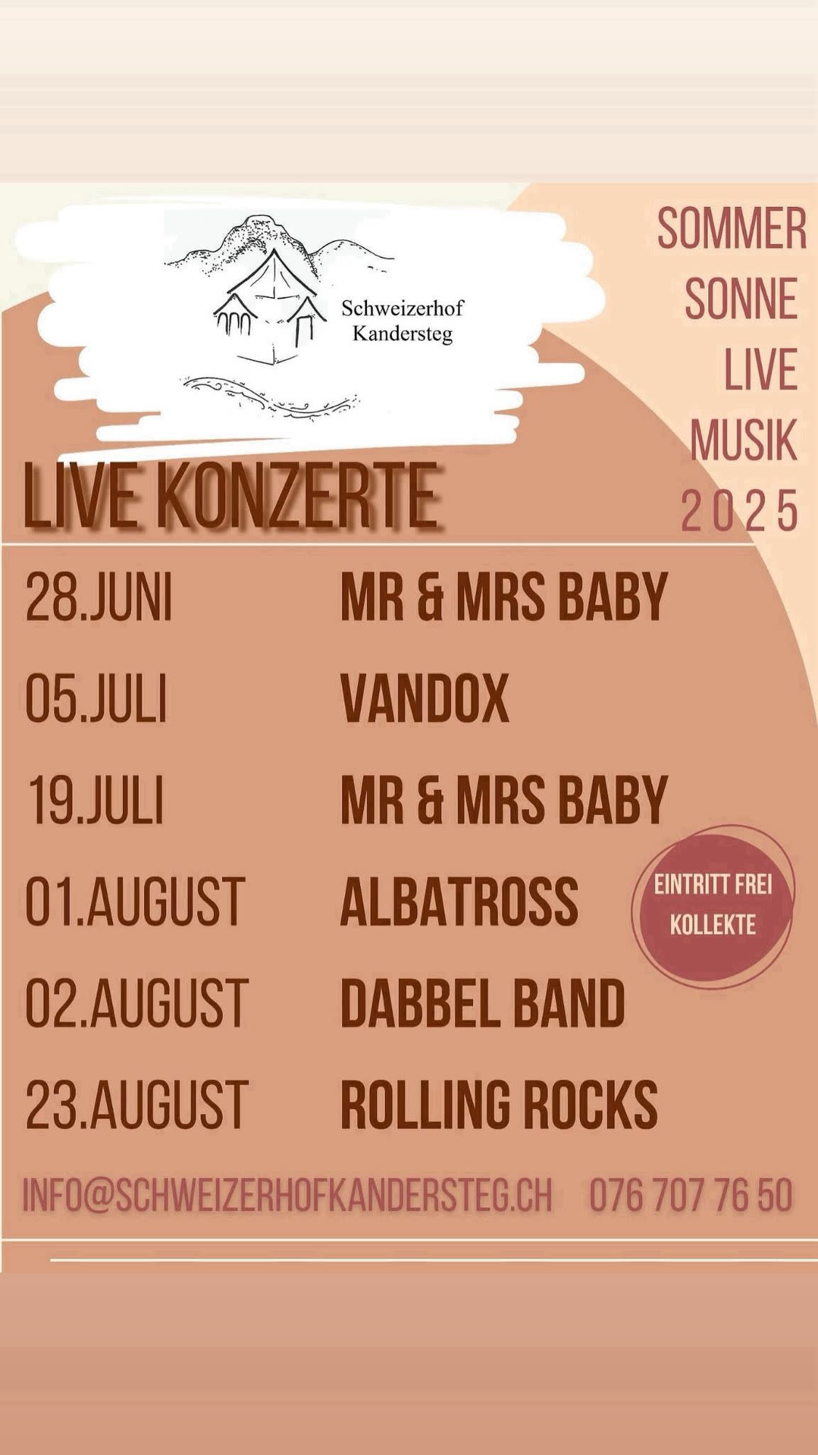 Liebe Irene, Herzlichen Dank nochmal, für euren tollen Auftritt, ich bekamdurchwegs postives Feedback, waren alle bgeistert. Ihr wart die perfekte Band für diese Location. Ihr wart das Sahnehäuptchen auf der Torte. Hoffe euch hat es auch Spass gemacht, und ihr wart mit unser Organisation zufrieden. Herzliche Grüsse Edwin