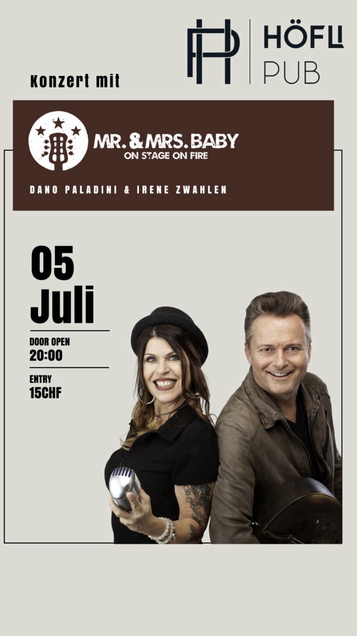 Suchen Sie noch eine passende Live Musik Band für Ihren Anlass ? Dann sind Sie hier genau richtig! Diese coole Live Band spielen Musikperlen aus den 50/60/und 70iger Jahren. Das Musik Duo/oder Trio rockt das Publikum und bringt die Zuhörer in Partystimmung. Wir freuen uns sehr auf Ihre Anfrage. Als professionelle Live Duo Formation mit zwei hervorragenden Musiker an der Front bietet Mr. & Mrs. Baby, nicht nur Coversongs zum Tanzen und Schwelgen, sondern auch eine mitreissende Bühnenshow. Beide Musiker sind erfahrene Profis und können sich ganz Ihrem Event anpassen.