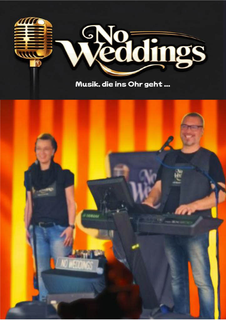 Wenn Sie No Weddings - Musik, die ins Ohr geht über dieses Formular kontaktieren, antwortet No Weddings - Musik, die ins Ohr geht Ihnen schnellstmöglich. Es ist gratis. Sie verpflichten sich nicht dazu, das erhaltene Angebot anzunehmen.