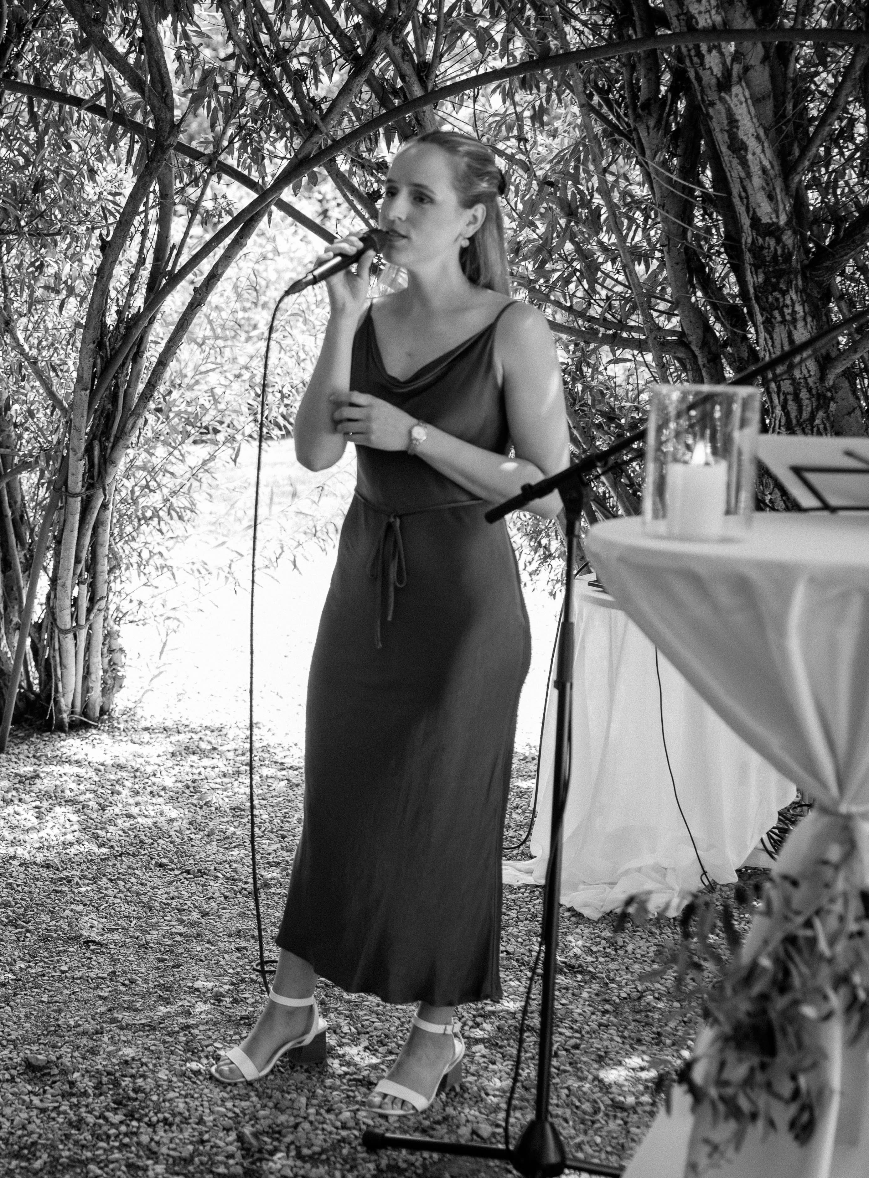 Sie ist auf all unsere Wünsche eingegangen und hat sogar extra Lieder für uns einstudiert, die nicht in ihrer Songliste standen. Ihre wundervolle Stimme und die gefühlvolle Darbietung haben unsere Zeremonie unvergesslich gemacht. Auch die Kommunikation mit ihr war jederzeit super unkompliziert und sympathisch. Vielen Dank, liebe Sarina, dass du unseren Tag so besonders gemacht hast!