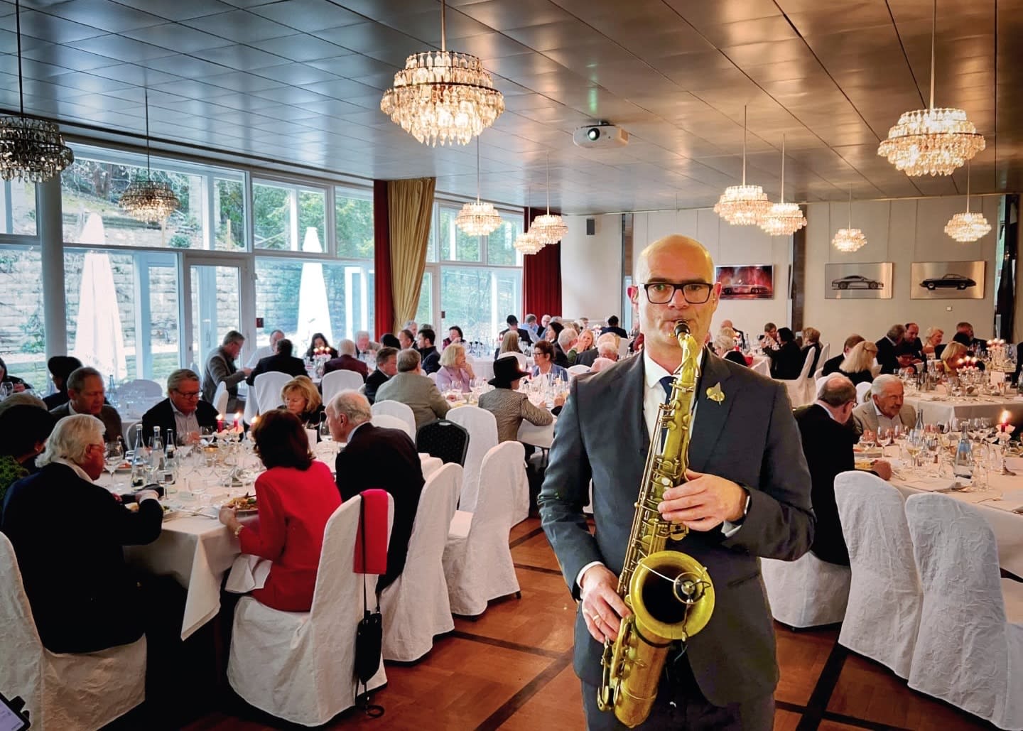 Die Engagements des Saxophonisten umfassen eine Vielzahl von Formaten - von einem Candle-Light-Dinner zu zweit im privaten Wohnzimmer, über eine Geburtstagsfeier mit 40 Personen im Restaurant bis hin zu einer großen Gala mit 350 Gästen im Ballsaal. Saxophonist Sebastian Lilienthal ist ist mit seiner One-Man-Band vor Ort immer professionell und zuverlässig. Er bleibt diskret im Hintergrund und sorgt mit seiner Musik dennoch für eine angenehme Atmosphäre, damit sich alle wohl fühlen.