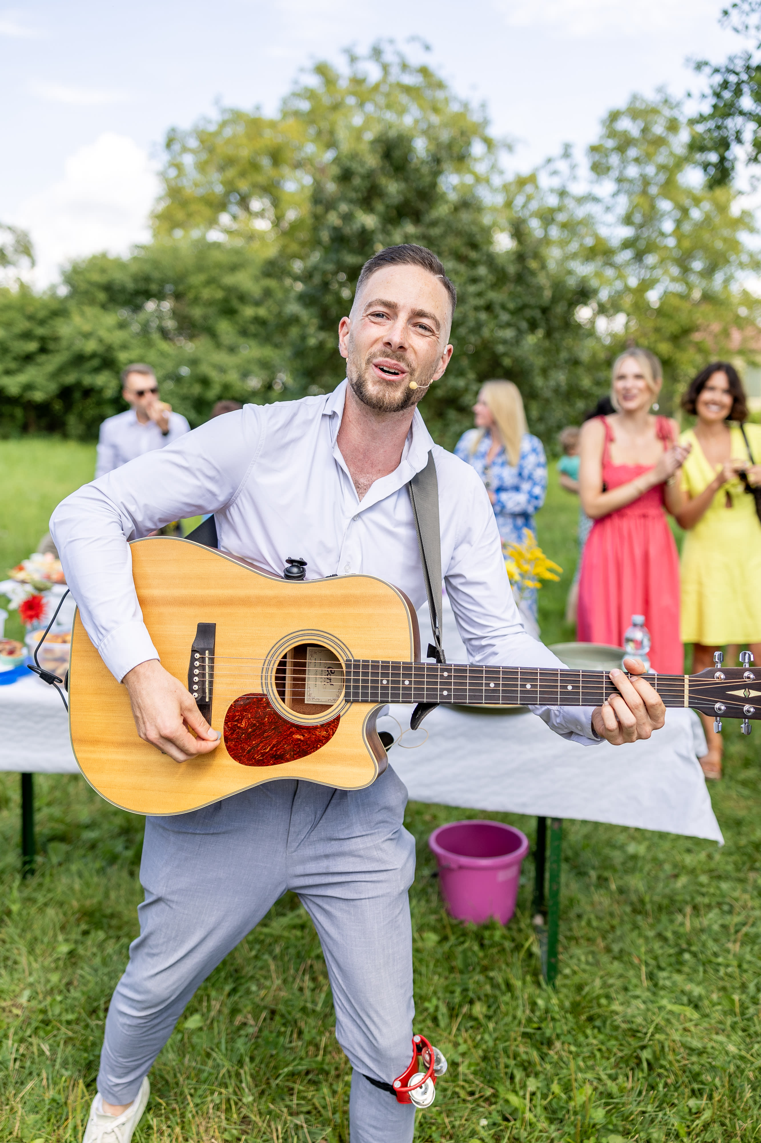 Ich trete solo auf, gerne aber auch im Duo oder mit weiteren Musikern aus meinem eingespielten Netzwerk – ganz nach Anlass und Wunsch. Mein Repertoire mit über 145 Songs ist vielseitig: von gefühlvollen Balladen für Trauungen bis hin zu Mitsing-Klassikern für die Tanzfläche. Spontane Liedwünsche sind immer willkommen!