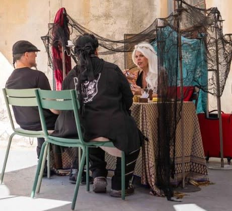 Meistens sind die Gäste am Anfang noch Skeptisch, doch nach und nach wollen immer mehr Gäste sich die Karten von Irina legen lassen. Wir haben es mehrmals erlebt das plötzlich die Gäste vor dem Zelt oder Paravent anstehen.