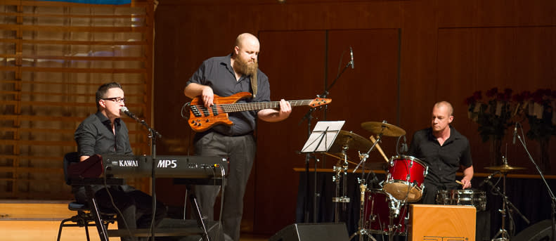 Ein Anwalt am Klavier und Gesang, ein Jazzmusiker am Bass und ein Kaufmann am Schlagzeug: The Clerks.