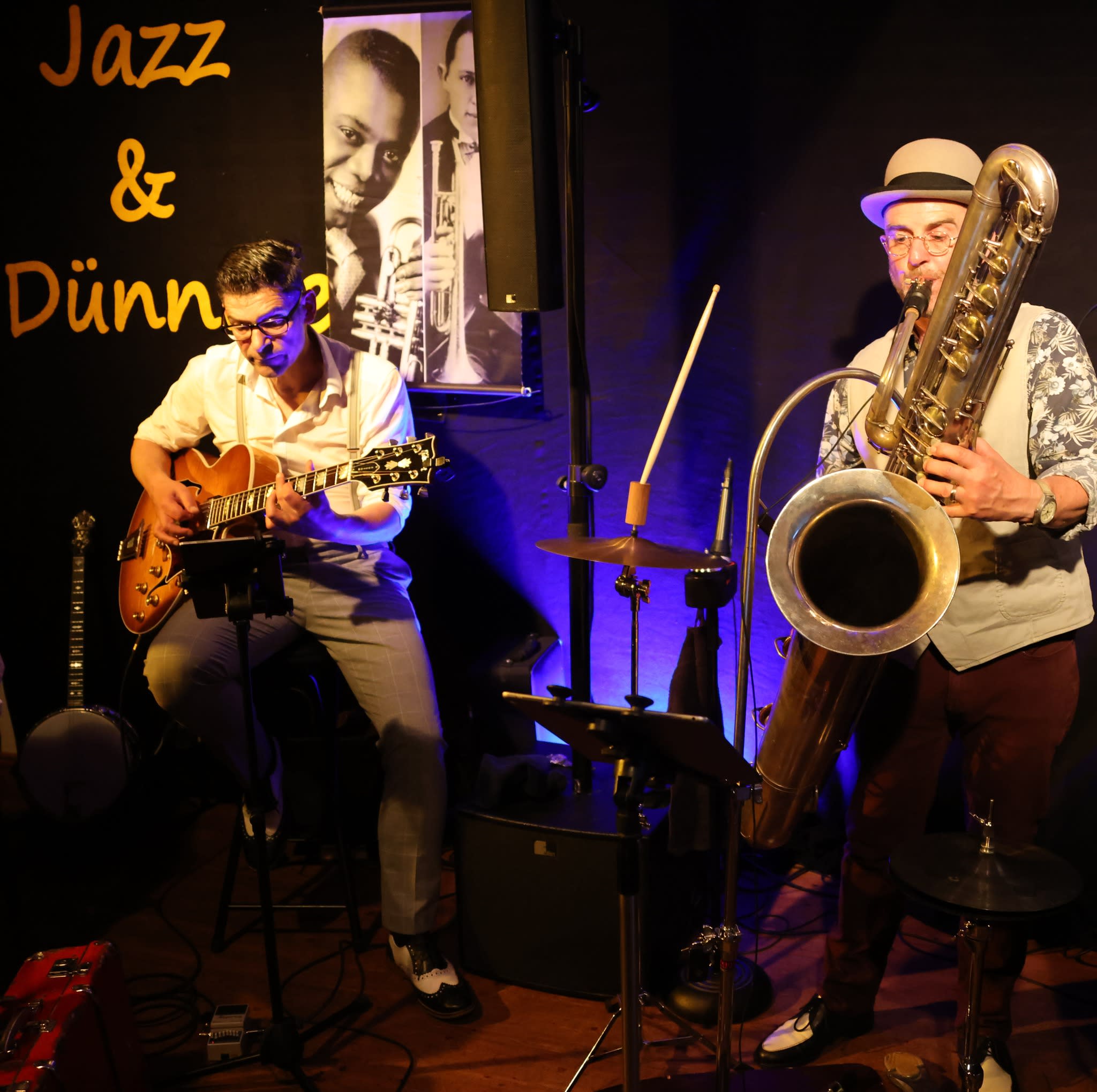 Mit jazzigerem Programm auch als extravagantes Duo BASS-SAXOFON PLUS KLAVIER möglich.