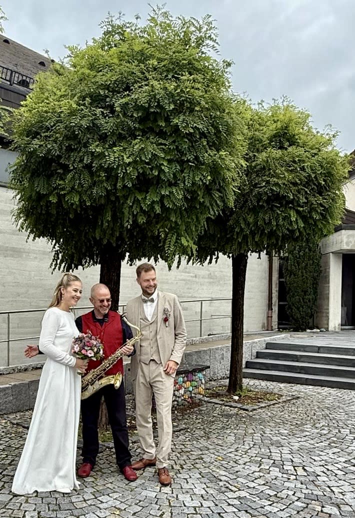 Romantische Saxofonmusik im Standesamt, in der Kirche oder bei einer freien TRAUUNG im Garten - das ist einfach magisch. Hier passen beispielsweise Can't help falling in Love (Elvis), How deep is your Love (Bee Gees) oder Just the two of us (Bill Withers).