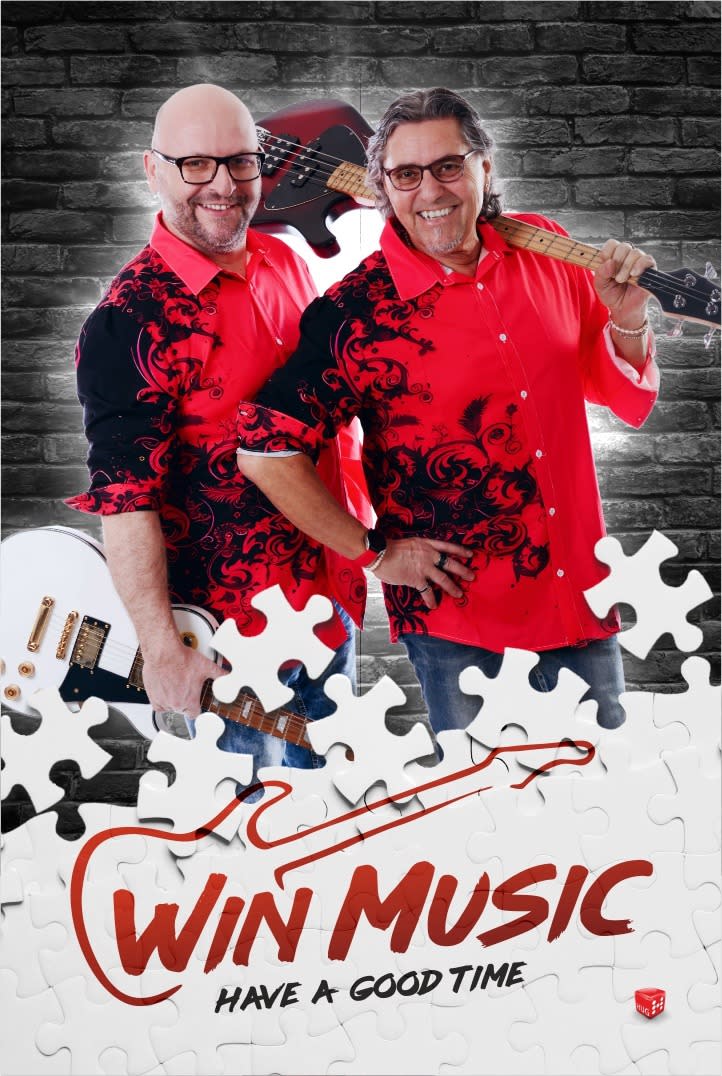Win Stöckli und Heinz Häusermann "Hüsi" sind WIN MUSIC. Mit den zwei Vollblutmusikern aus dem Aargau sind Sie bestens für Ihre nächste Party gerüstet. Von "sidefin bis abgerockt"- haben Win und Hüsi alles drauf. Ob für Ihre Hochzeits-, Geburtstags- Vereinsfeier oder ein anderes tolles Fest, WINMUSIC findet immer den richtigen Ton und bringt Sie in jedem Fall in Stimmung.