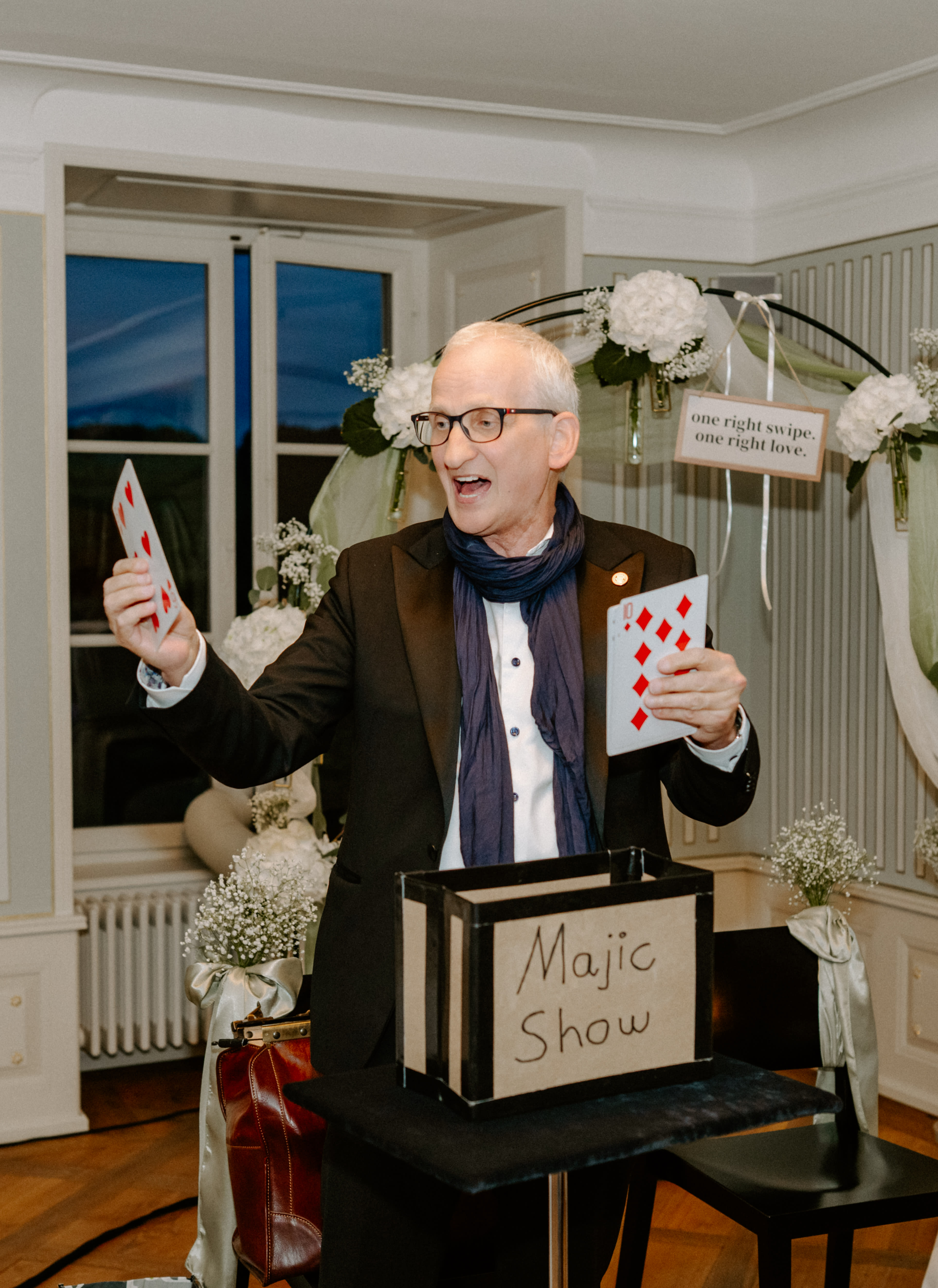Zauberer Bortini hat unseren Anlass mit seiner Tischzauberei auf höchstem Niveau bereichert und für staunende Gesichter und begeisterte Gespräche gesorgt. Mit unglaublichem Geschick, Humor und einer charmanten Präsenz verstand er es, sich dezent in die Gesellschaft einzufügen und gleichzeitig magische Momente direkt vor unseren Augen geschehen zu lassen.