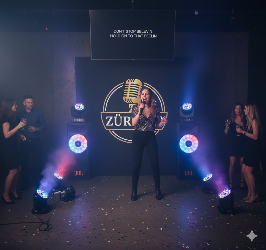 ZÜRIOKE - Mobile Karaoke für unvergessliche Events in Zürich: Wir bringen die Karaoke-Party direkt zu Ihnen! Ob Firmenevent, Hochzeit, Geburtstag oder private Feier - mit unserem mobilen Karaoke-Service verwandeln wir jeden Anlass in ein unvergessliches Erlebnis. ✓ Über 100.000 Songs in allen Sprachen ✓ Professionelle PA-Anlage & Funkmikrofone ✓ Grossleinwand mit Beamer ✓ Kompletter Auf-/Abbau & Anfahrt inklusive ✓ Flexible Pakete verfügbar für: - Firmenevents & Weihnachtsfeiern - Hochzeiten & Polterabende - Geburtstage & Jubiläen - Team-Building Events - Private Partys